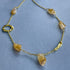 The gold brass circle is stamped with the world UBUNTU. Hanging from it is five citrine quartz crystals and a hand stamped plate that says MAGIC. The necklace is 14k Gold plated and 20 inches long. Nickel Free.